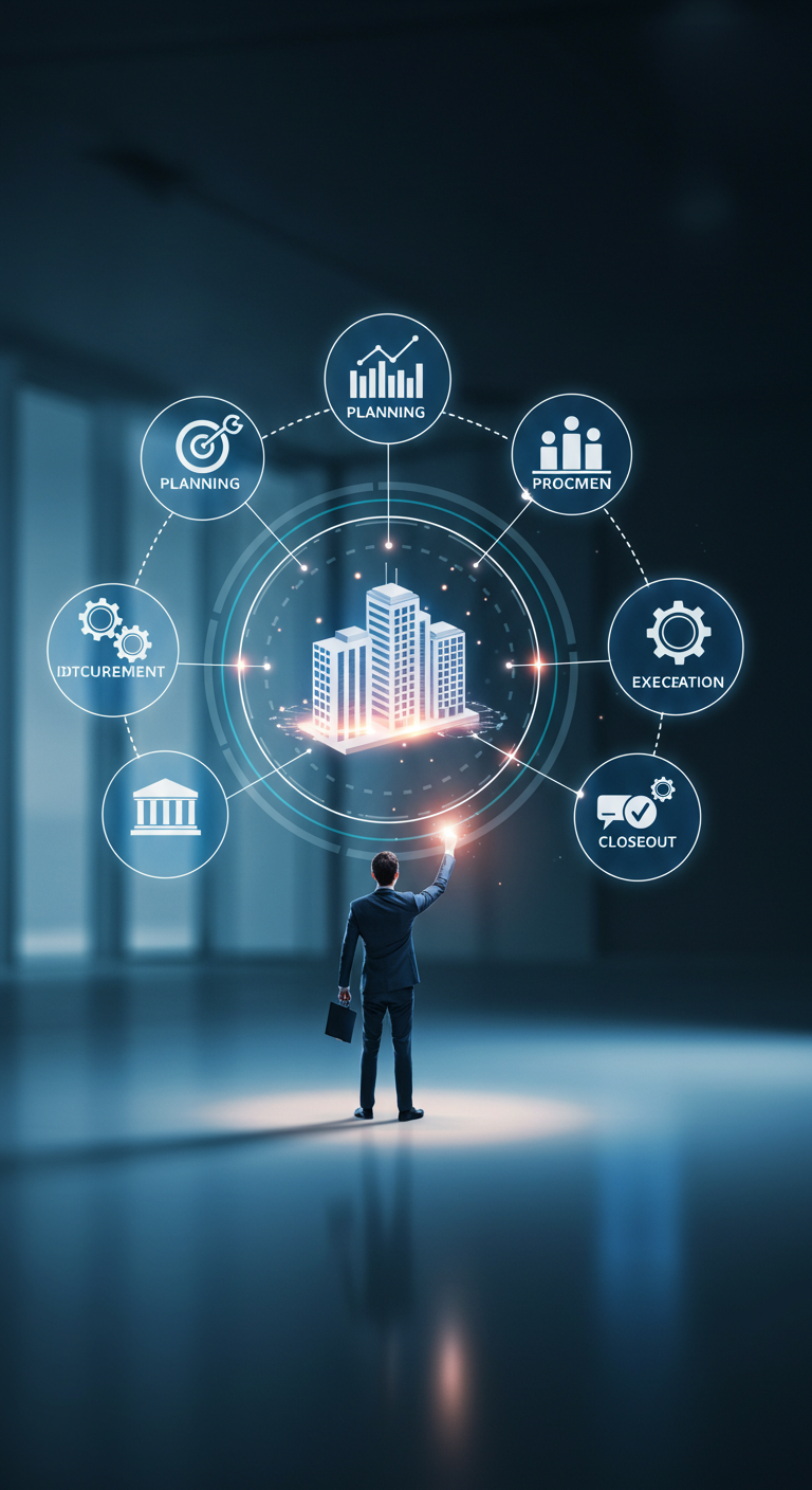 Oferecemos a gestão completa do seu projeto, desde a fase de planejamento e contratações até a execução, fiscalização e entrega final. Como seu ponto único de contato, coordenamos todas as disciplinas e fornecedores, garantindo a comunicação fluida e a resolução ágil de desafios. Nosso gerenciamento assegura que os objetivos estratégicos e financeiros do Fundo sejam o norte de cada etapa do processo.
